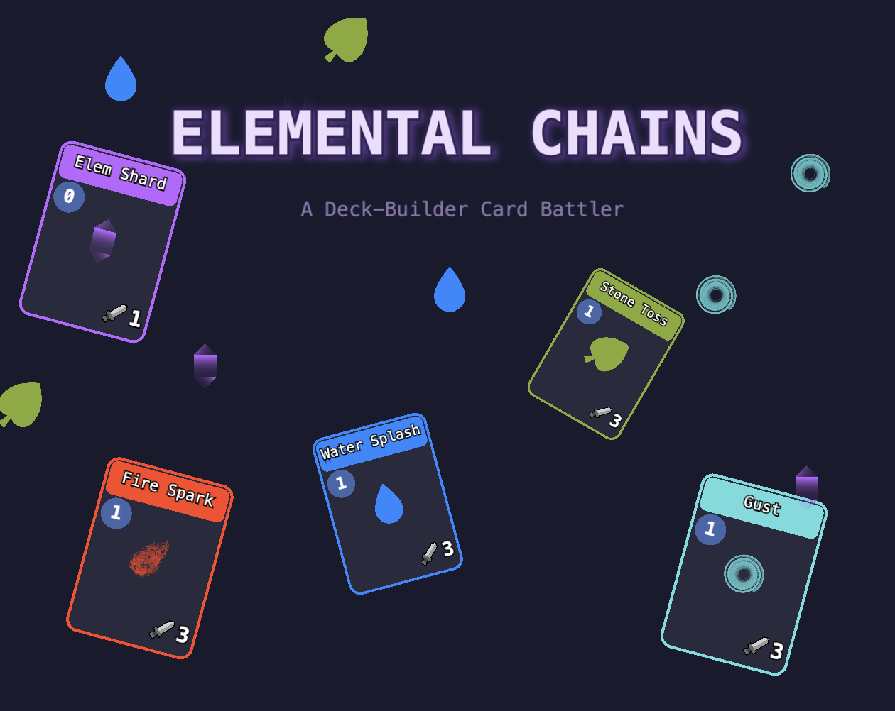 Elemental Chains is a browser-based roguelike card battler with chain reaction combos.